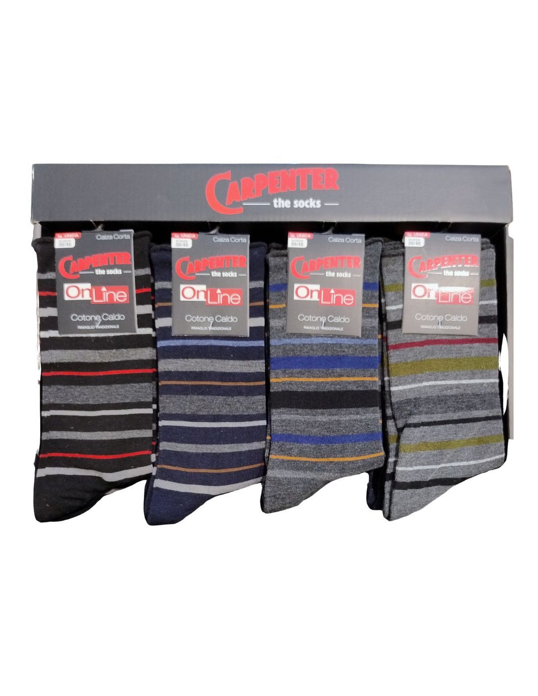 SHORT loosened socks without cuff for men in warm striped color cotton.