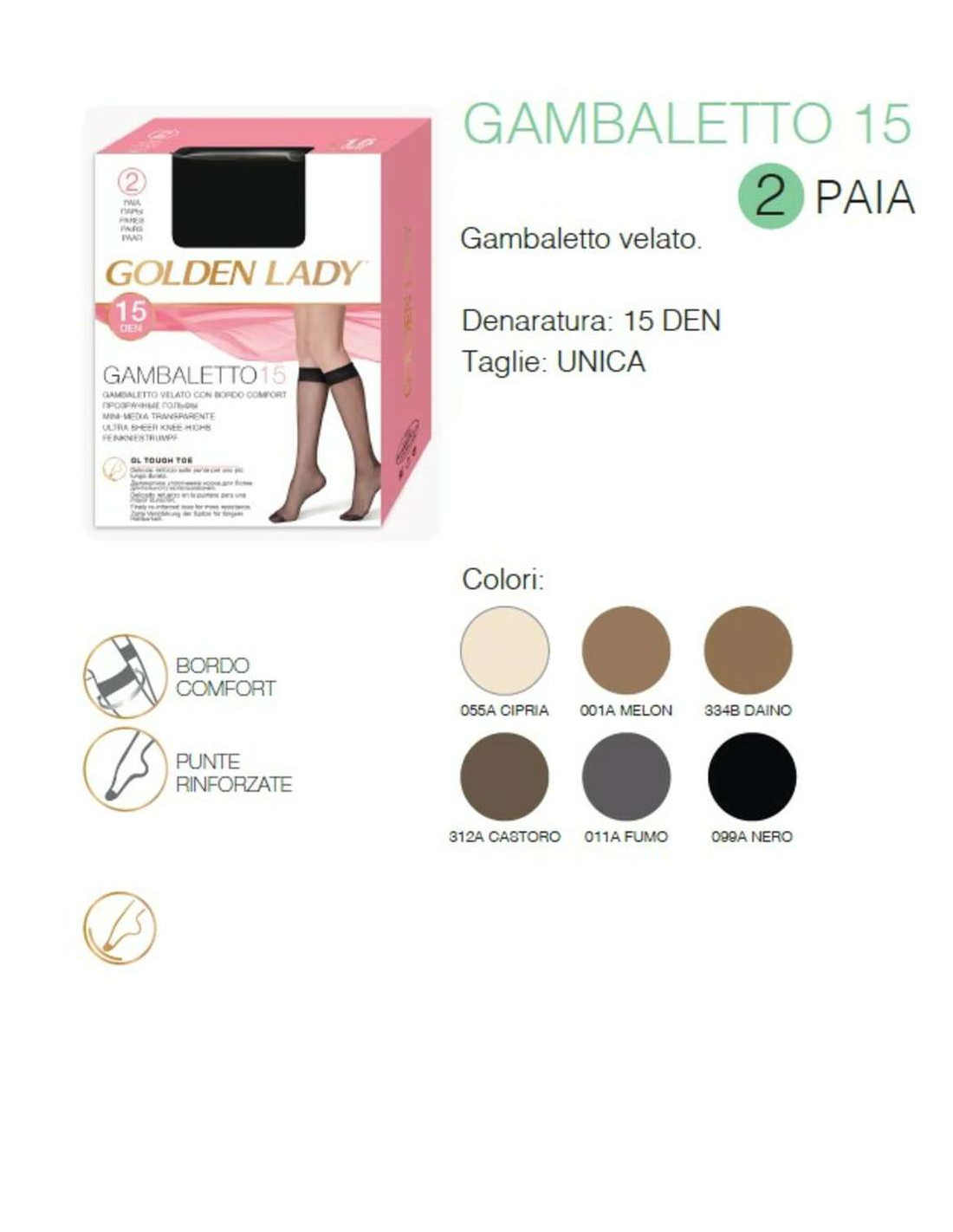 Women's sheer knee-highs Golden Lady 15 den. (2 PAIRS)