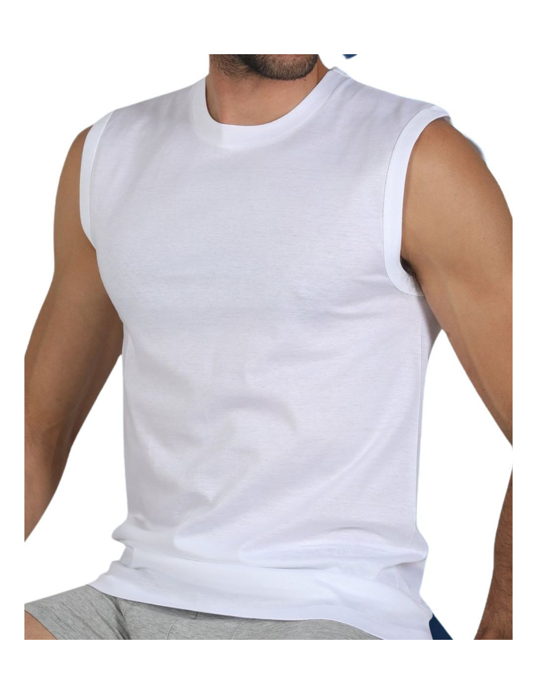 Sleeveless crew neck sweater in pure mercerized cotton, non-adherent model. Made in Italy