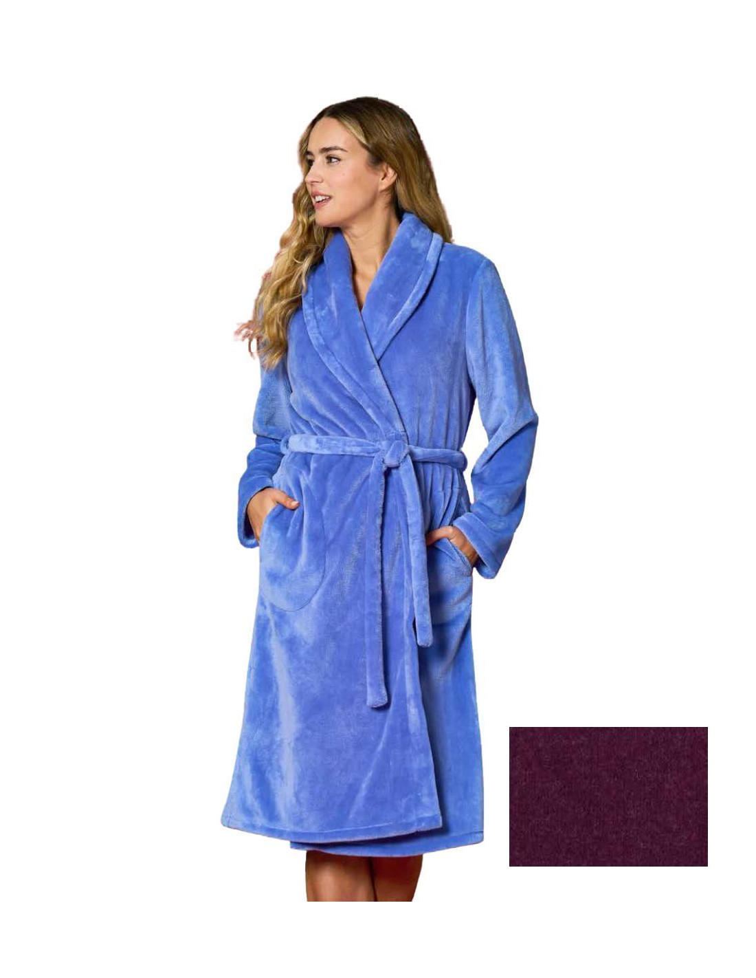 Women's crossed dressing gown in WARM and soft CORAL PILE in solid color and pockets.