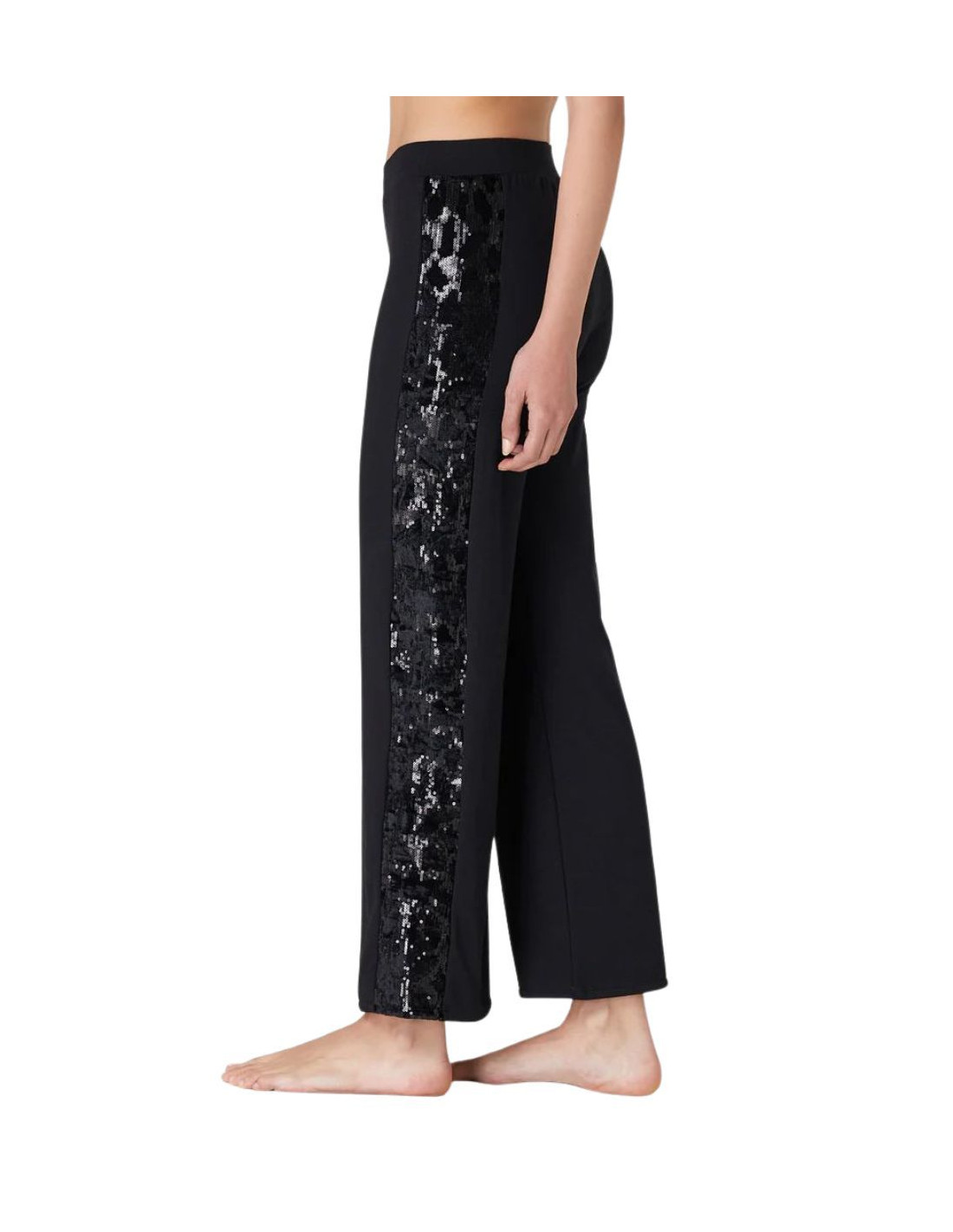 Women's trousers made of sequined tulle combined with soft stretch cotton.