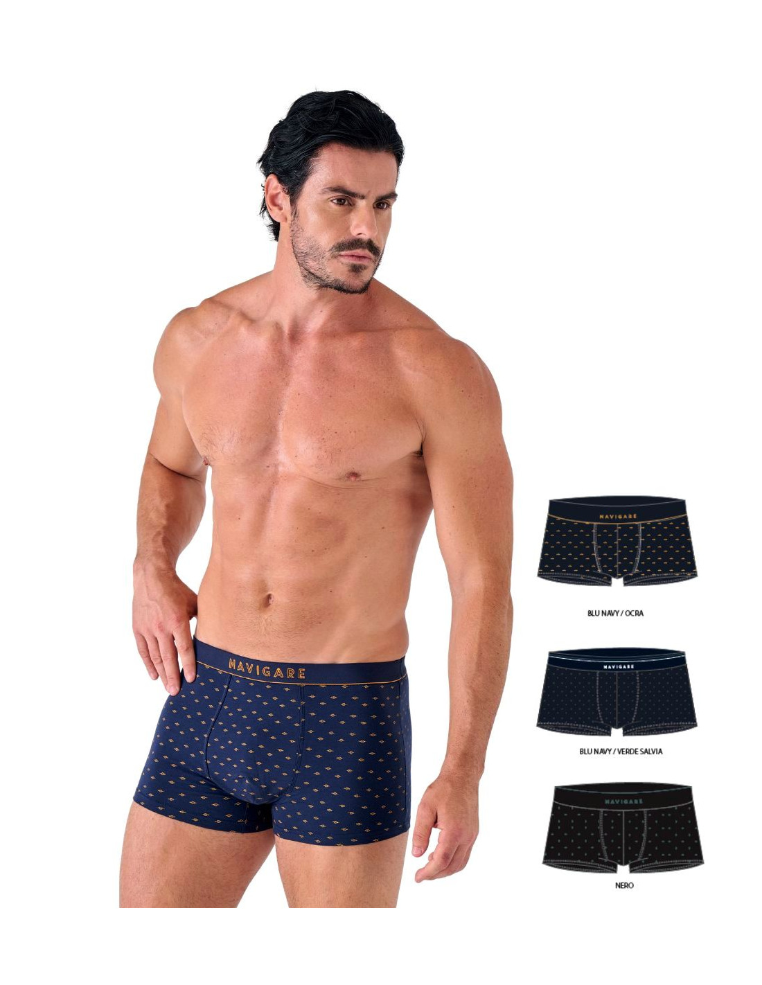 Set of 3 men's boxers in stretch cotton with fine pattern and logo elastic.