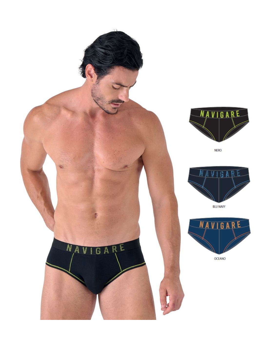 Set of 3 men's briefs in stretch cotton with colored profiles and logo elastic.