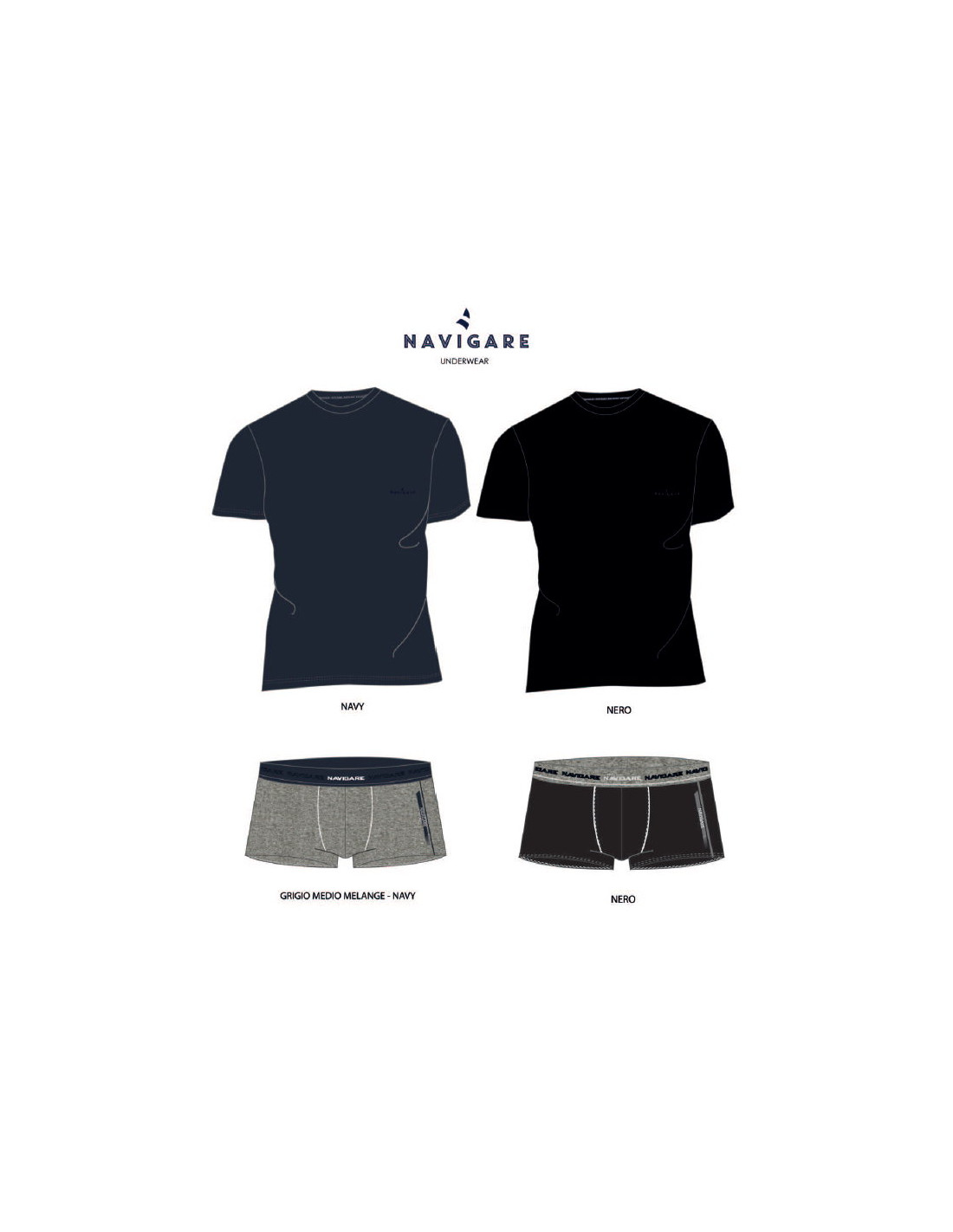 Men's set composed of round neck elastic cotton t-shirt with logo + boxer coordinated.