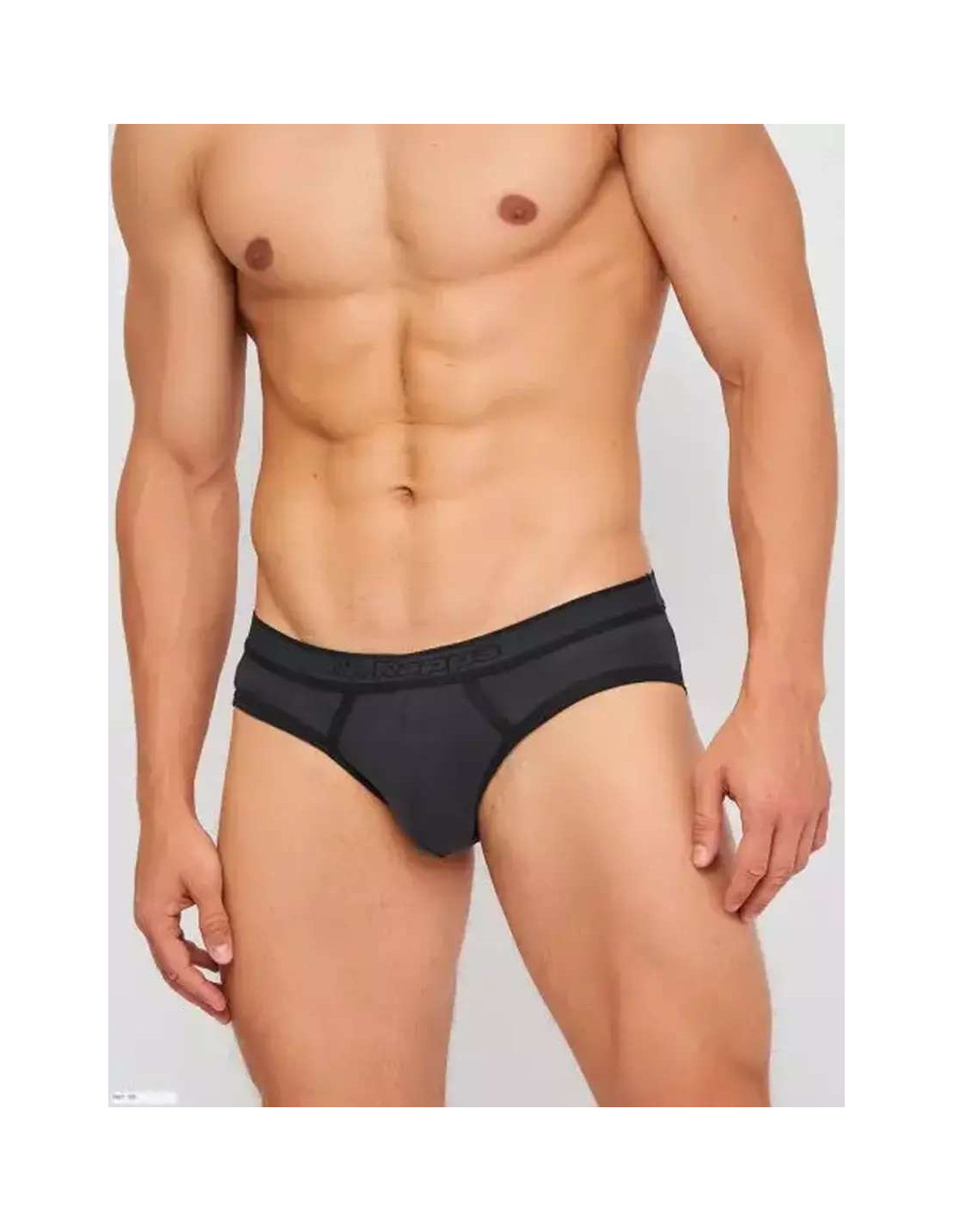 Group of 6 low waist elastic cotton briefs with colored profiles and logo.