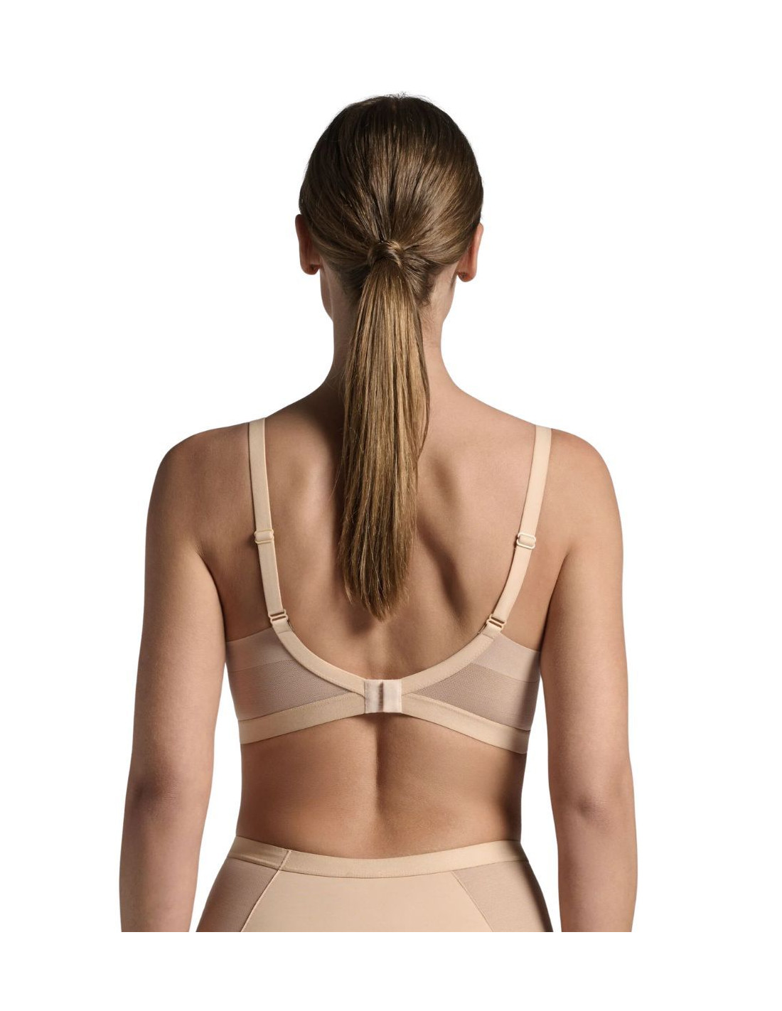 Unlined underwired bra in microfiber with micro tulle inserts. It features a Powernet tulle ruffle that provides effective underarm support without marking, for a soft and reassuring fit.