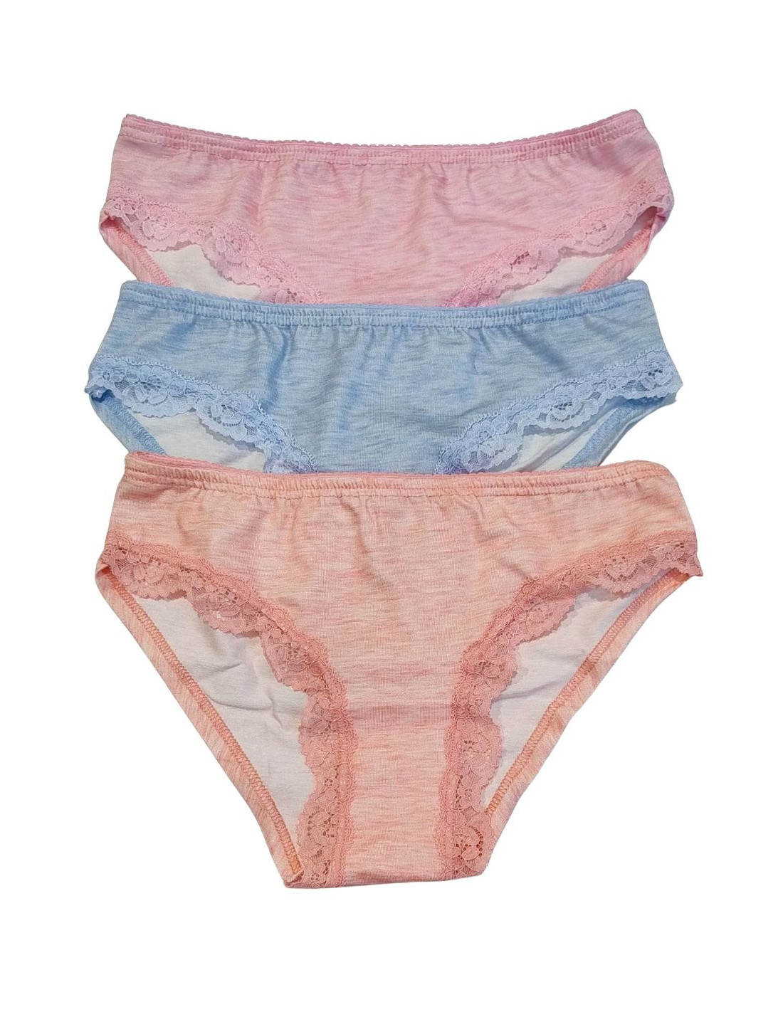 Group 3 melange stretch cotton woman briefs with lace profiles.