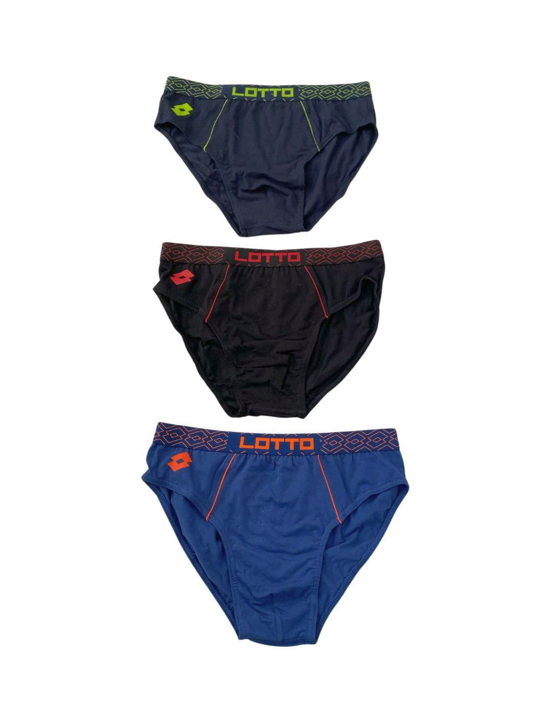 Group of 6 elastic cotton men briefs with logo and colored profiles.