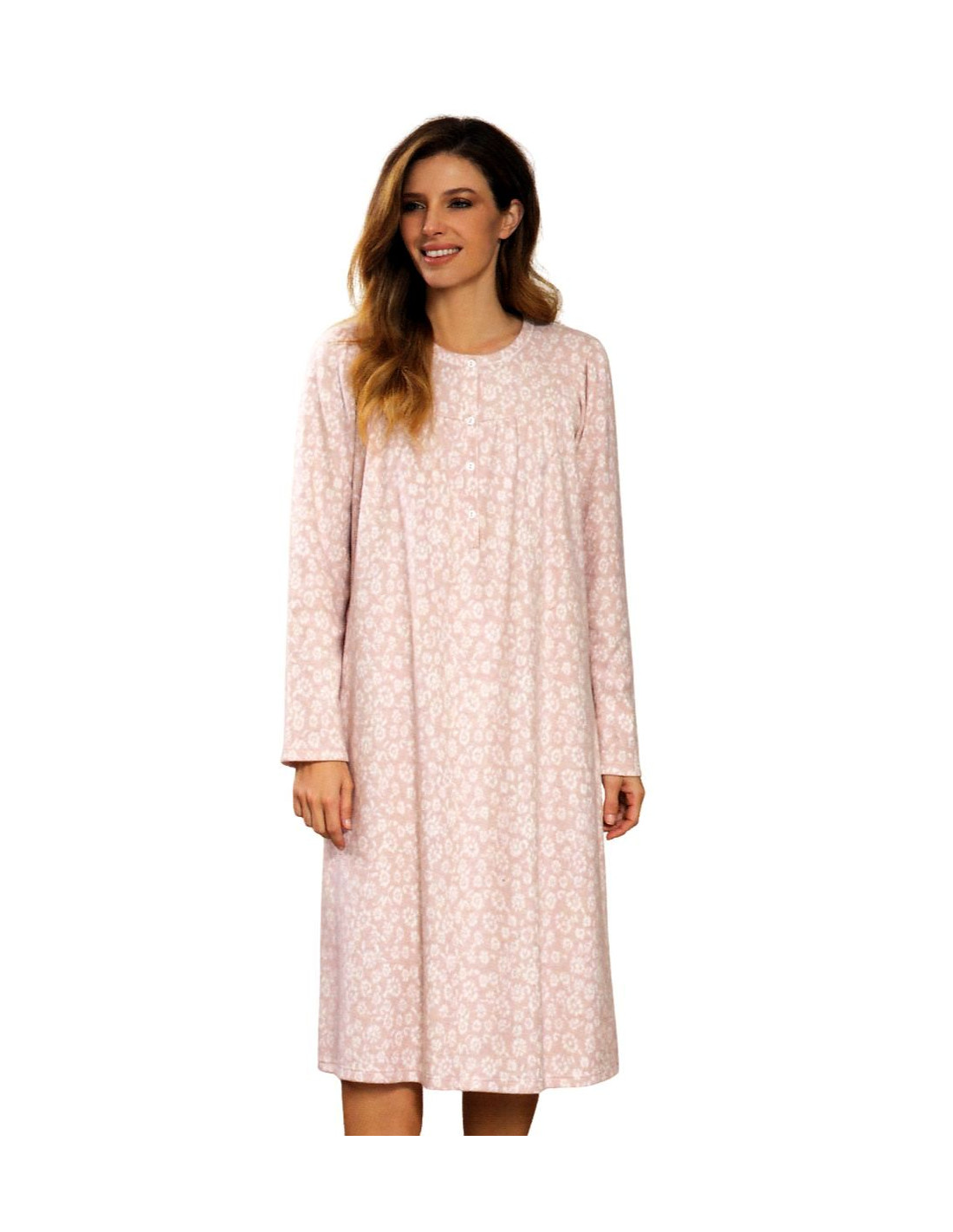 Woman warm plush cotton jersey nightdress Kissimo Biancaluna 25058