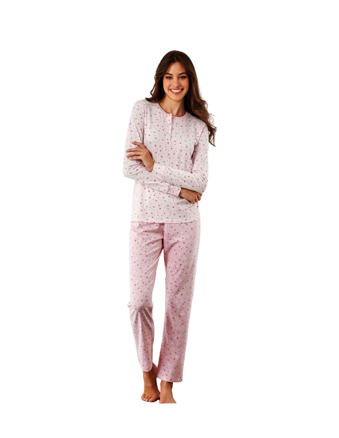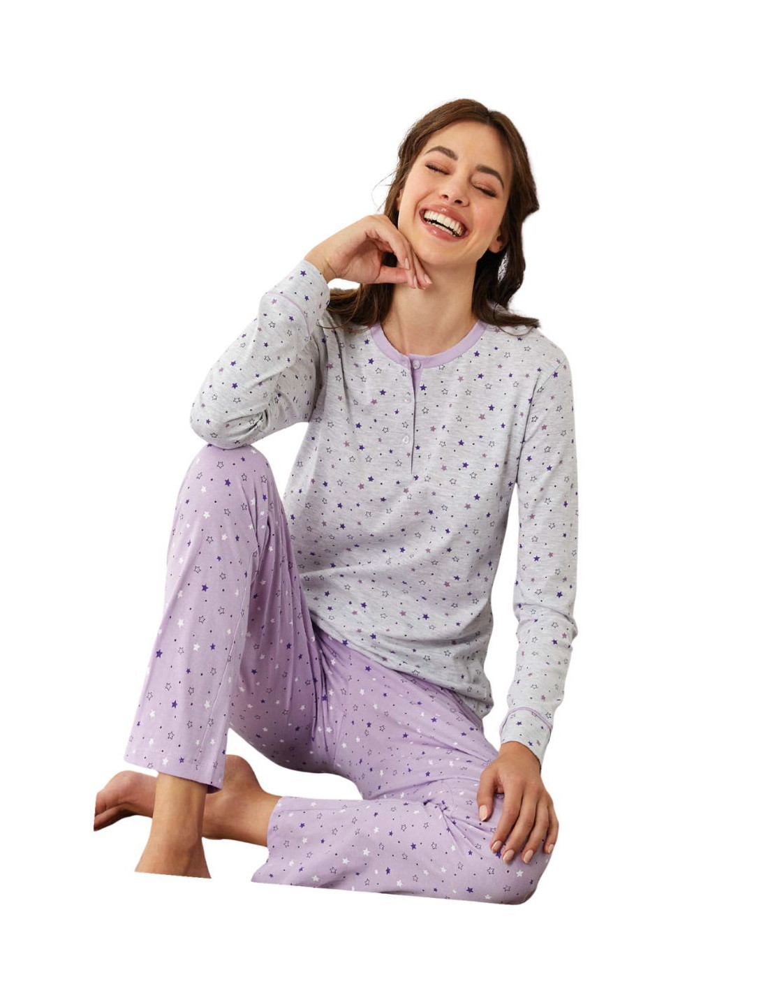 Women's seraphine pyjamas in cotton jersey with small stars pattern and long trousers without cuffs.
