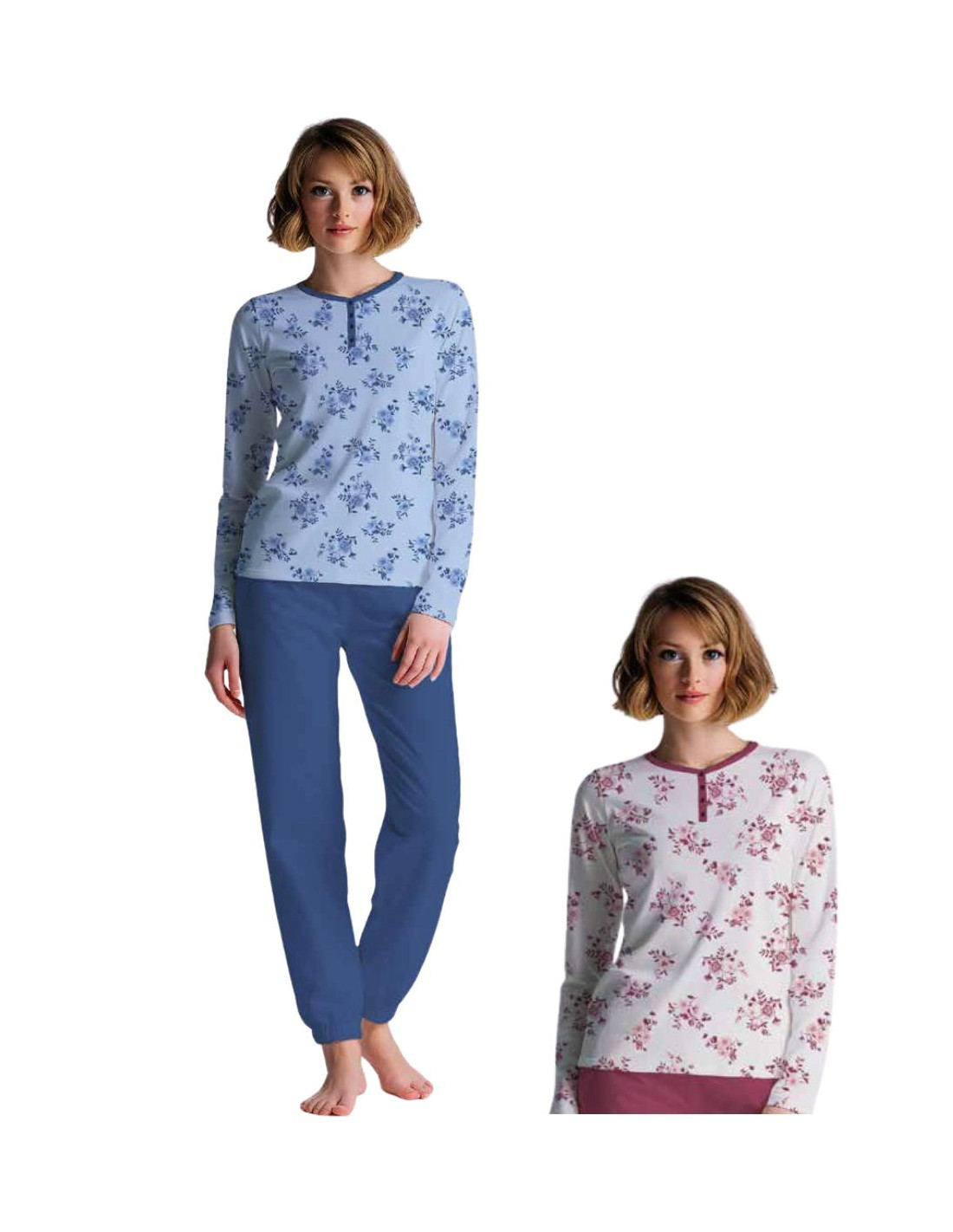 Women's seraphine pajamas in floral patterned cotton jersey and long trousers with cuffs.