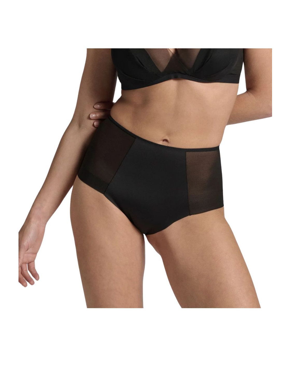 High-waisted panties with seamless hip seams allow the garment to gently hug the hips without creating any snugness, enhancing the figure with extreme discretion. The raw cut in Microspacer, combined with the Powernet selvedge, eliminates the need for elastic in the leg openings. Designed with a modern, contoured fit that hugs the body without constraints.