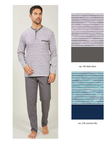 Seraphine fine striped pattern cotton jersey men pyjamas with long trosers without cuffs.