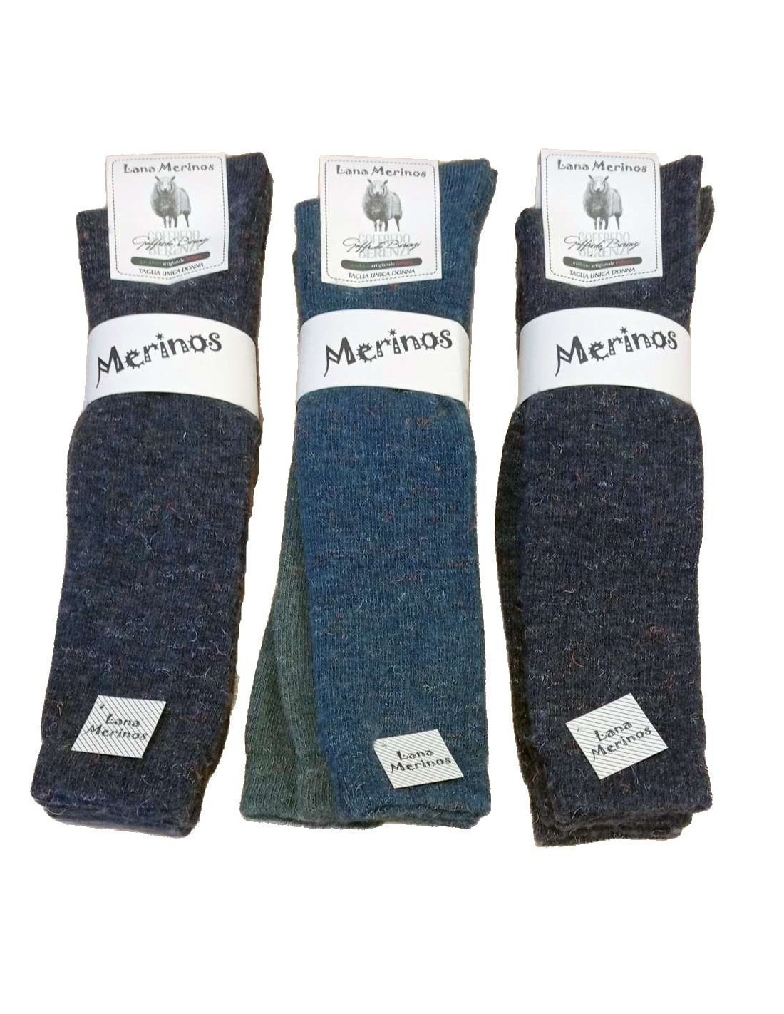 Group of 2 long socks in warm stretch melange Merinos wool.
