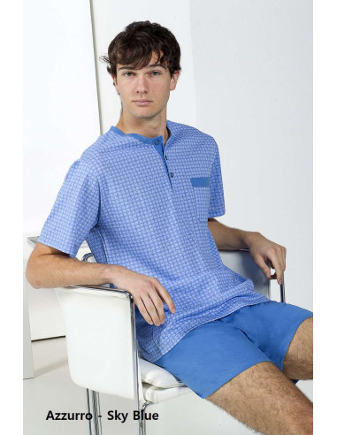 Men's seraph pajamas in patterned cotton jersey with short sleeves and pocket and short trousers.