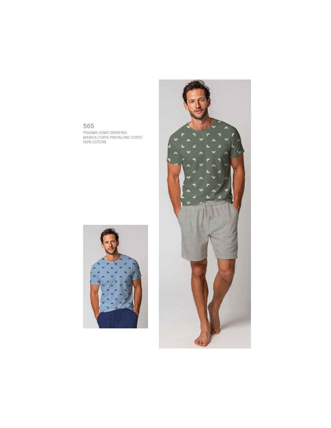 Seraphine geometric patterned cotton jersey pajamas with half sleeves and short pants.