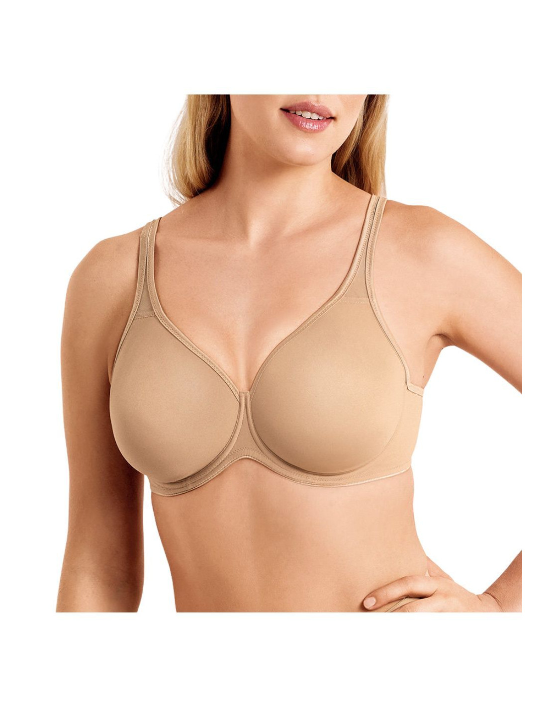 Microfiber underwired and unpadded balcony bra with shaping effect, preformed cups, larger belt and higher back.