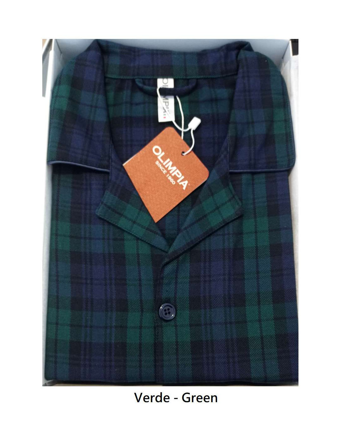 Men's pajamas with open jacket and shirt collar in warm LIGHT FLANNEL FABRIC (medium weight) with squared pattern, pockets and long trousers with elasticated waist.