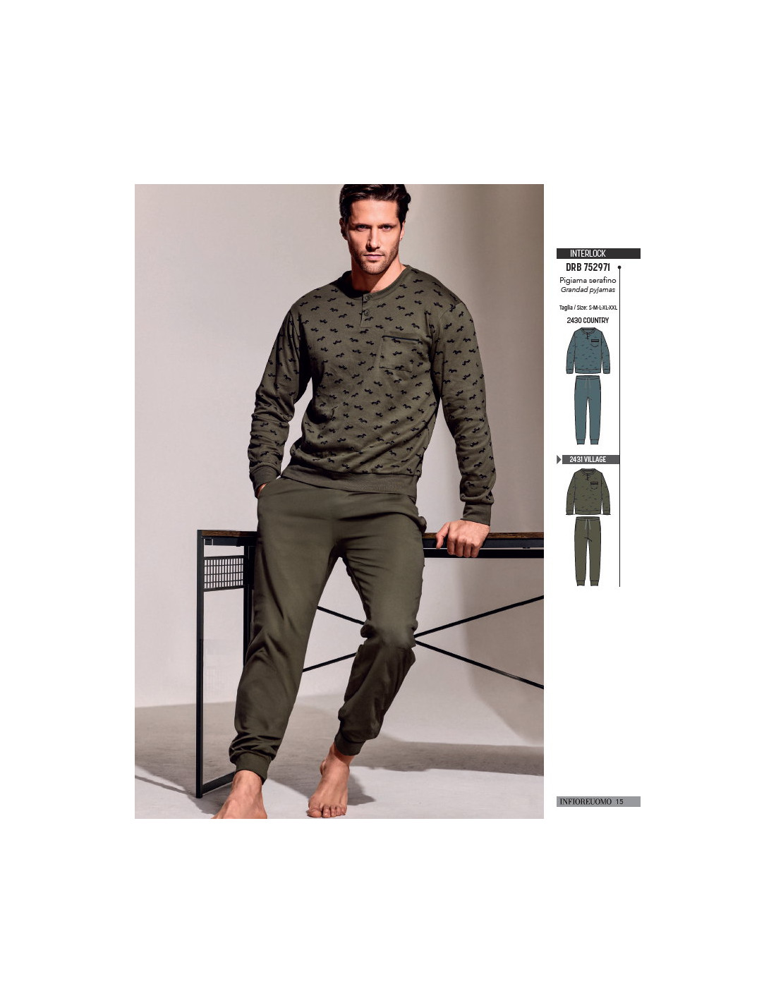 Men's seraph pajamas in warm cotton jersey (medium weight) with small pattern and trousers with cuffs.
