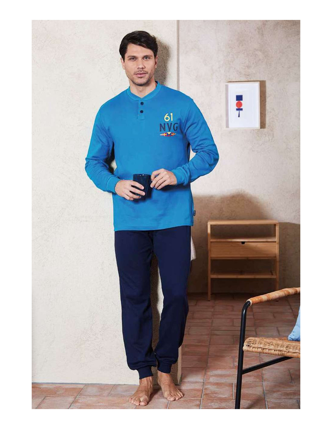 Men's warm cotton jersey and flannel tissue pajamas Navigare 141949