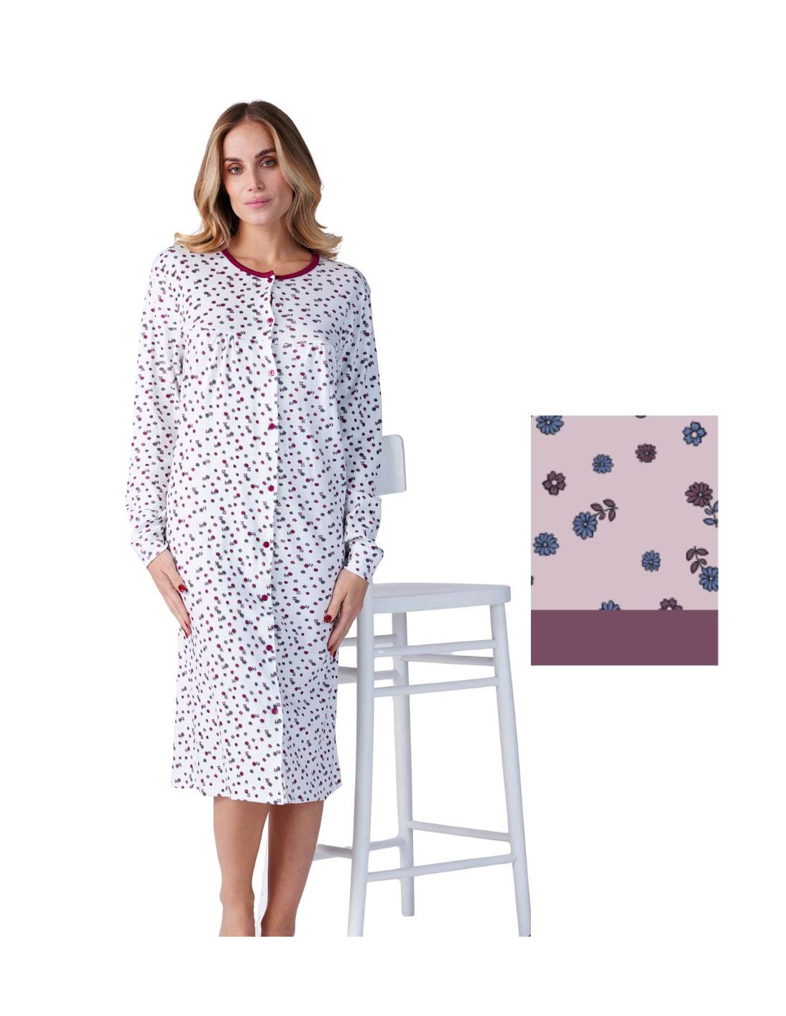 Fantasy warm cotton jersey (medium weight) clinic nightdress with long sleeves and full opened.