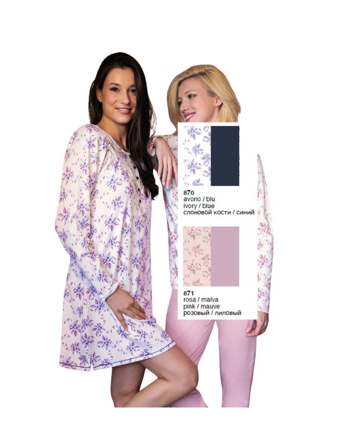 Women's seraphine nightgown in warm cotton jersey (medium weight) with a floral pattern.