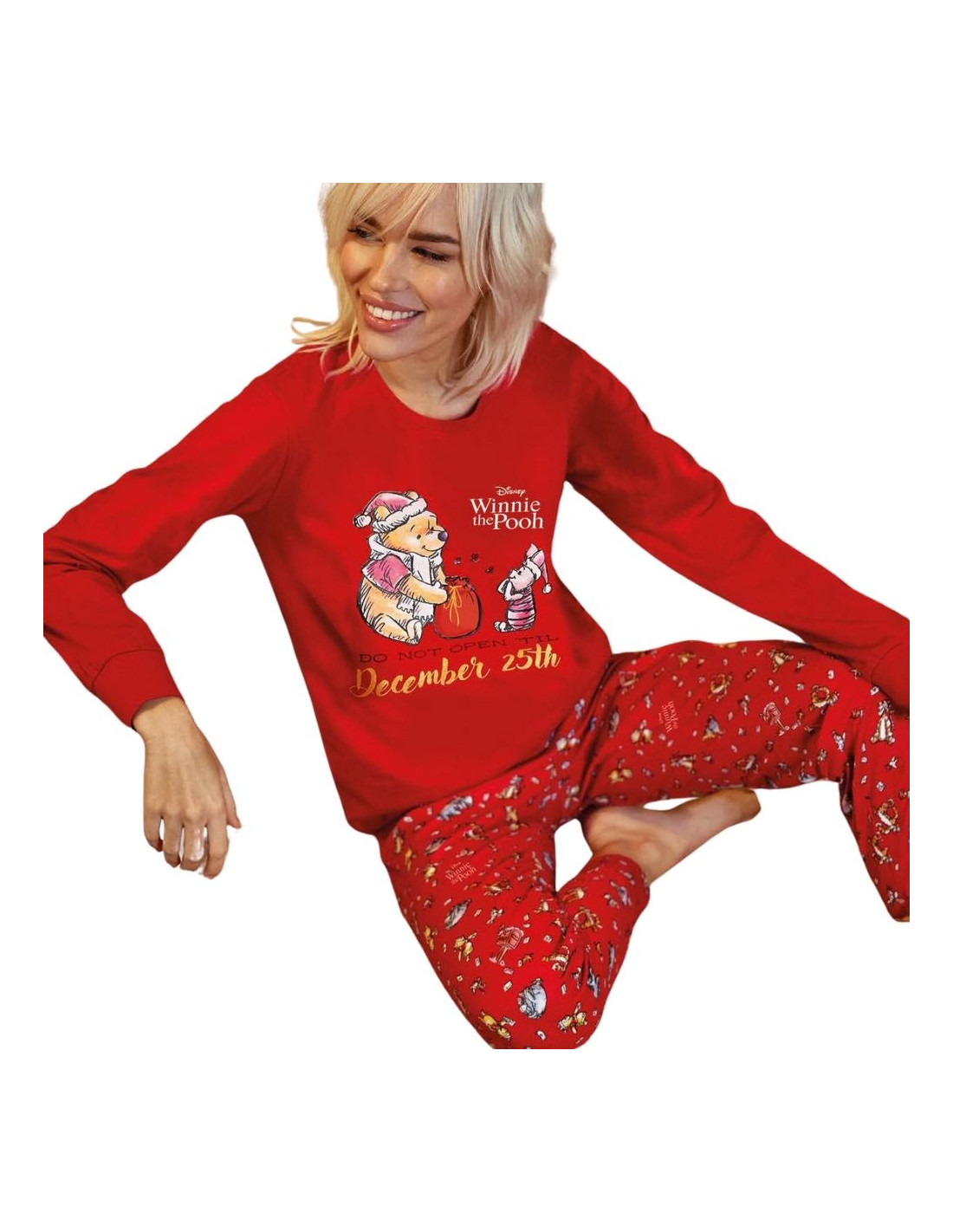 Women's long-sleeved pyjamas in warm cotton jersey with a cute Winnie the Pooh print.