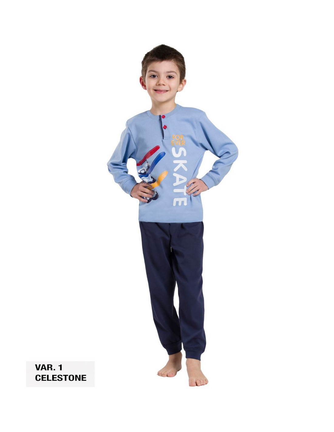 Seraphine boy's pajamas in WARM cotton jersey (medium weight) with print and long pants with cuffs.