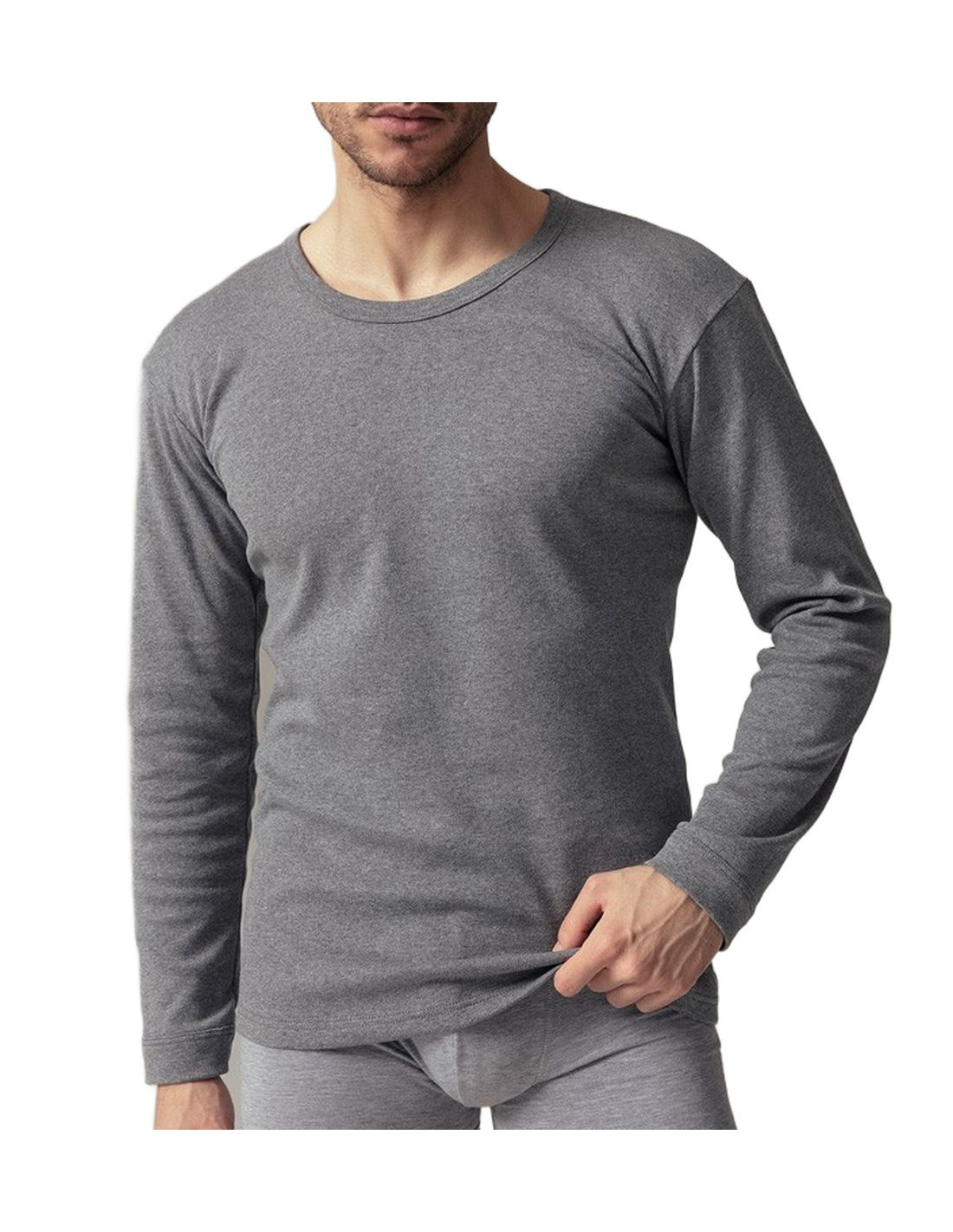 Men's round neck shirt in WARM fleece cotton with long sleeves.