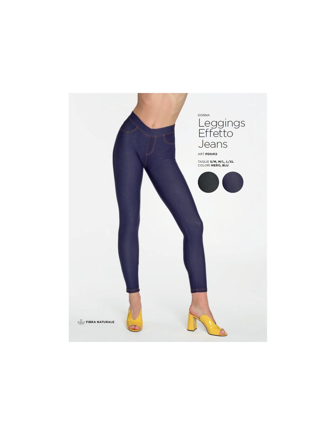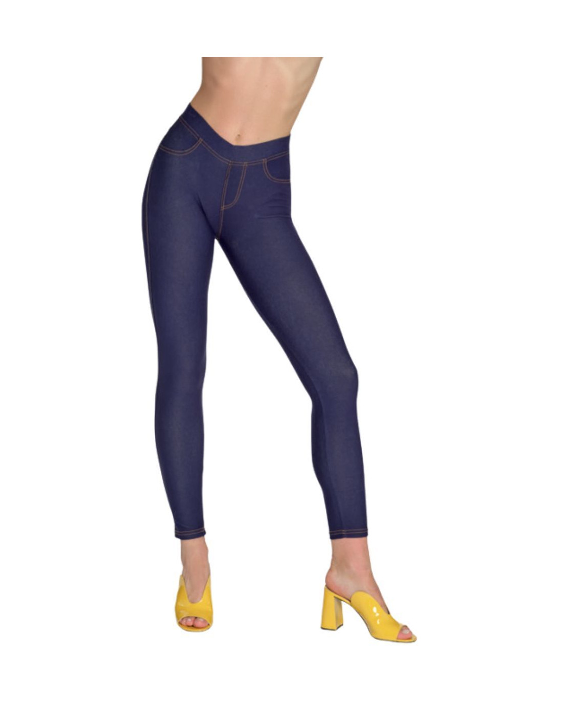Viscose jersey woman leggings with jeans effect and pockets rear.