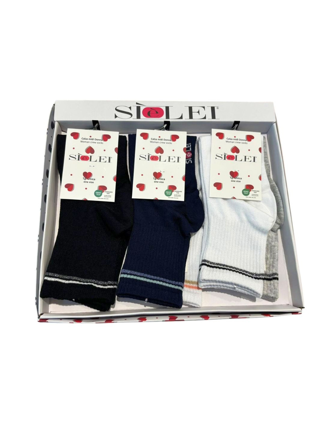 Group of 2 women's short socks in striped alpaca wool Goffredo Berenzi 9006