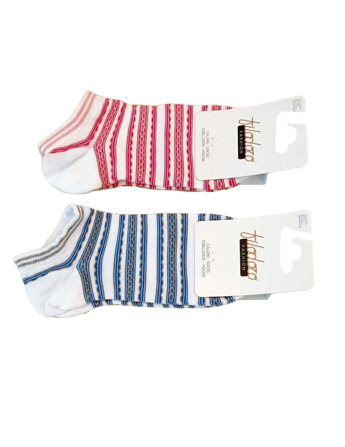 Women's short sock in stretch cotton with irregular striped pattern and lurex.