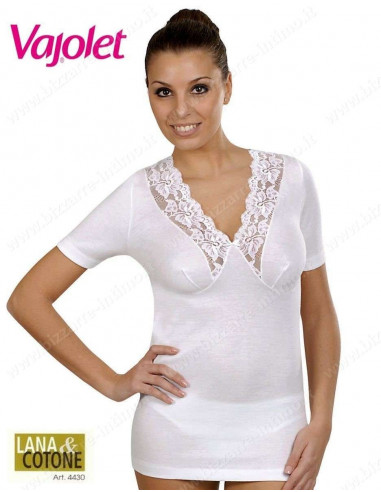 Women's wool and cotton vest with lace Antonella 620666