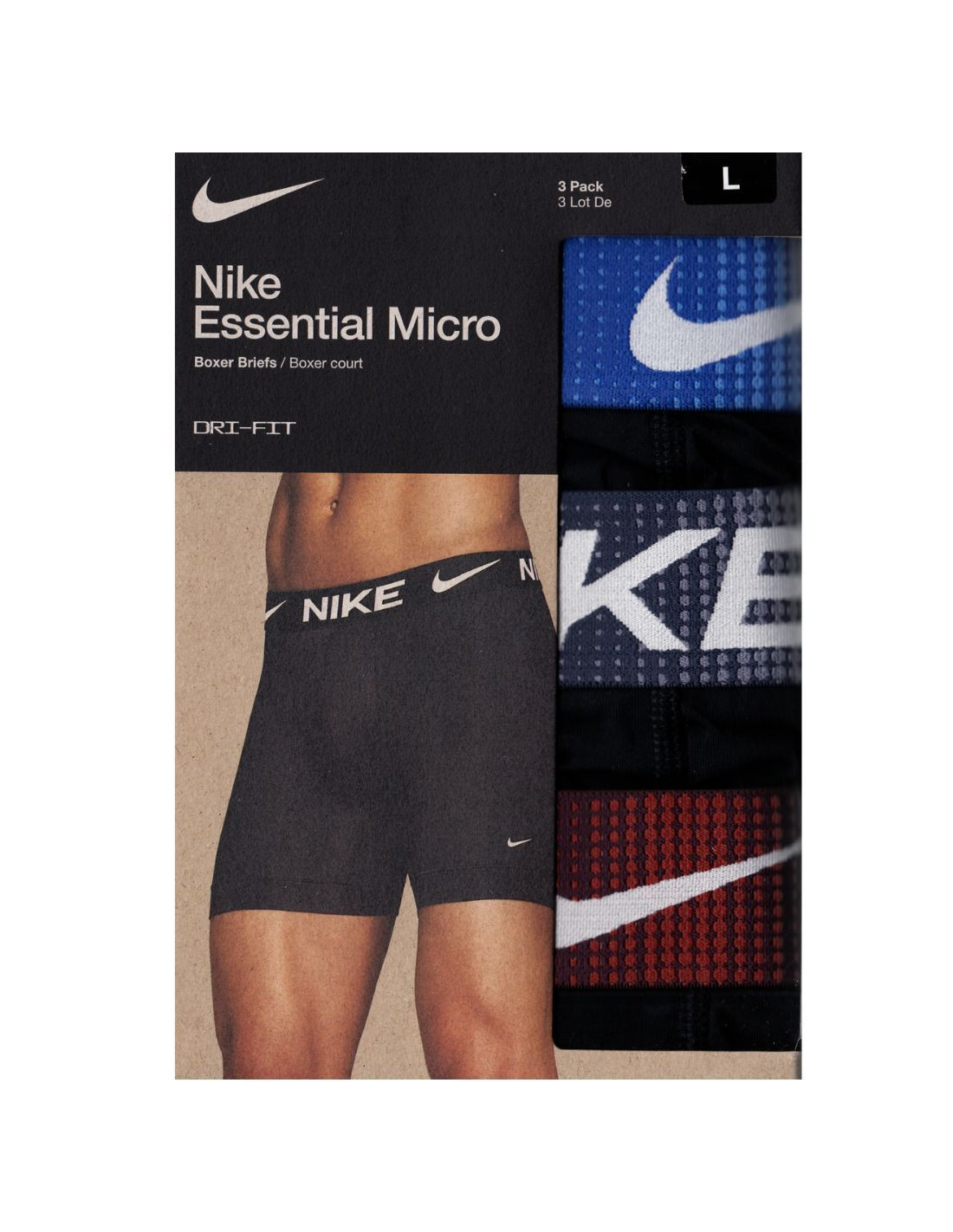 Set da 3 BOXER Nike realizzati in microfibra morbida e leggera. Il tessuto con tecnologia Dri-FIT favorisce la traspirazione e mantiene la pelle asciutta, mentre la struttura stretch garantisce una vestibilità dinamica e aderente al corpo. Le cuciture piatte riducono gli sfregamenti, offrendo una sensazione di comfort continuo anche durante l'attività fisica.