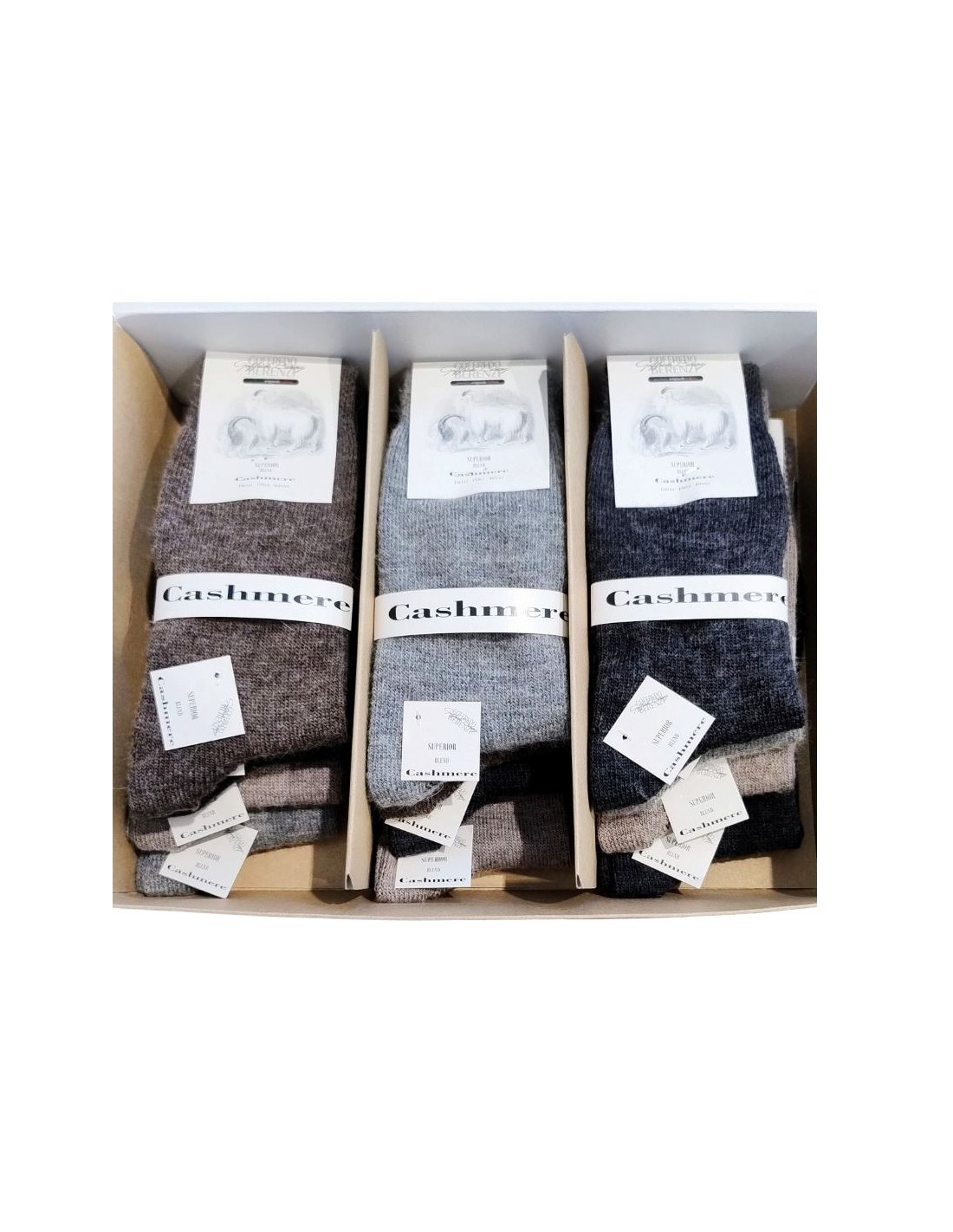 L'unione tra lana e cashmere impreziosisce la calza in cashmere mantendola calda ma rendendola piu' soffice e confortevole al tatto.