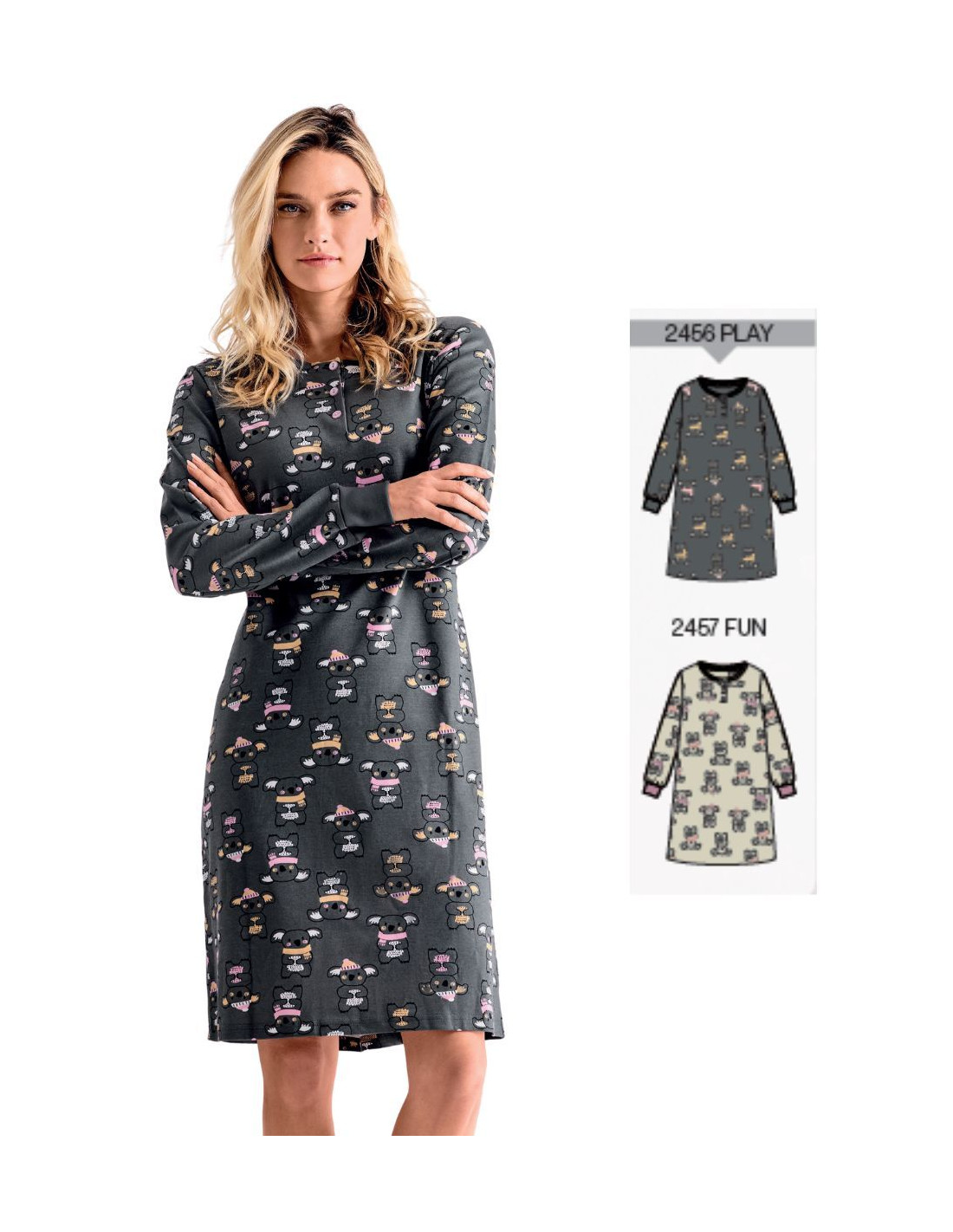 Camicia da notte donna calibrata in jersey di cotone caldo Karelpiu' KY7009