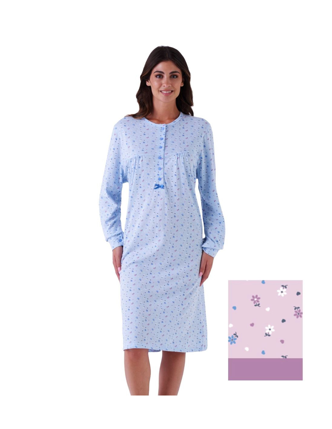 Camicia da notte donna a manica lunga in cotone Moquette Amelie
