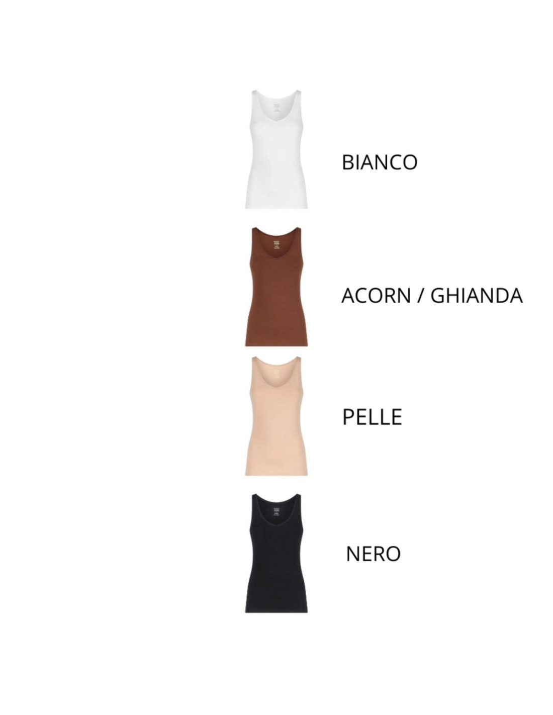 Canottiera da donna realizzata in cotone elasticizzato extra fine, con spalla larga e scavo a V