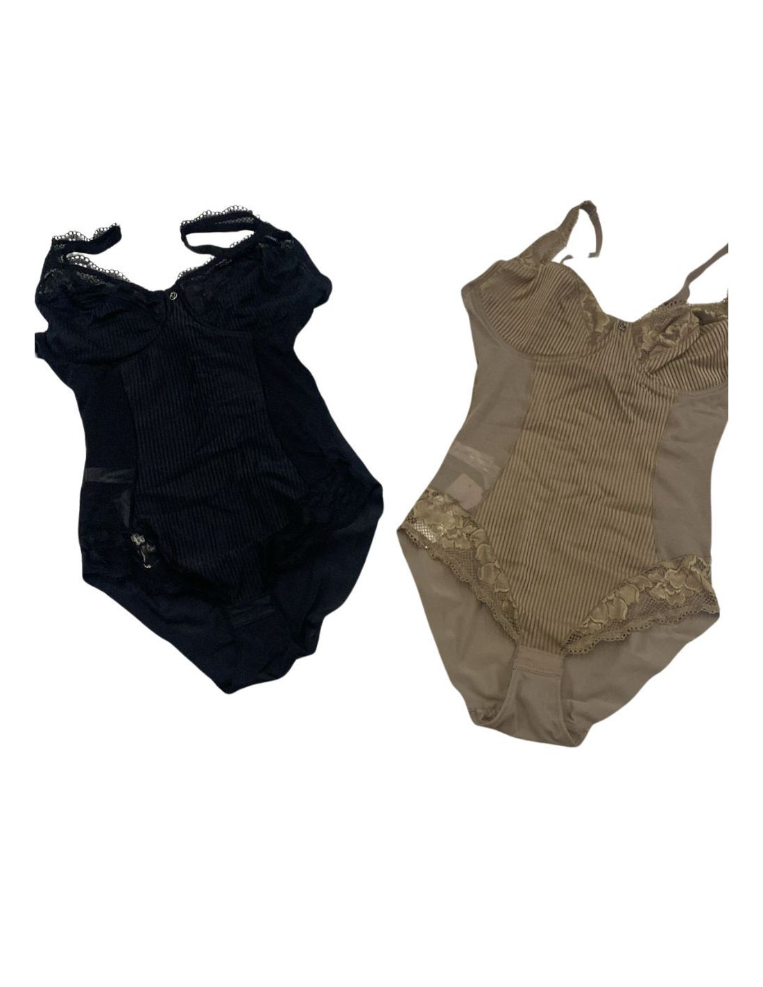 Body francese senza ferretto, in microfibra jacquard ornata da un pregiato pizzo floreale e da inserti laterali in tulle.