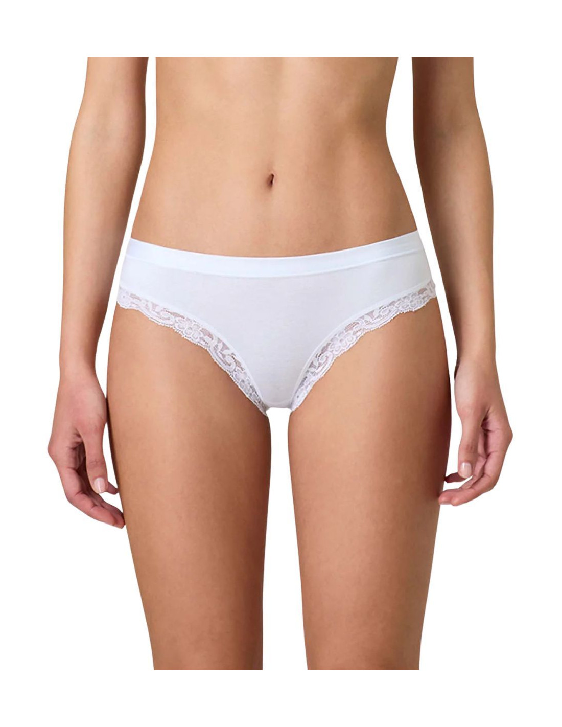 Gruppo di 3 slip donna in cotone elasticizzato e modal con profilo in pizzo nelle sgambature.