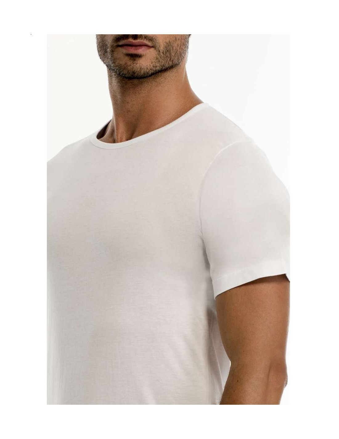 T-shirt uomo girocollo basso a manica corta in jersey di puro cotone pettinato.