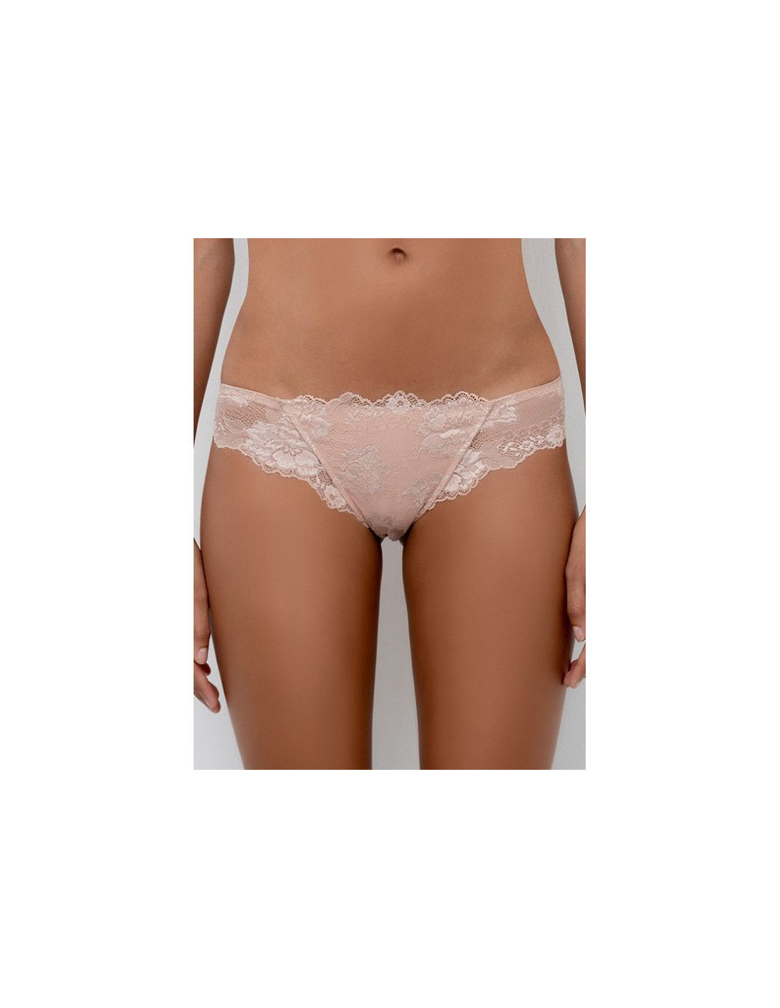 Slip in raffinato pizzo elasticizzato e micro-tulle con pannello in cotone sulla pelle.