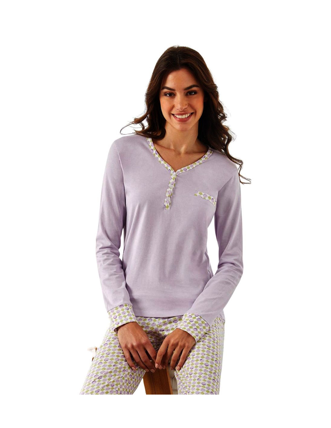 Pigiama donna a manica lunga in jersey di cotone Infiore Ibiscus IBS654142