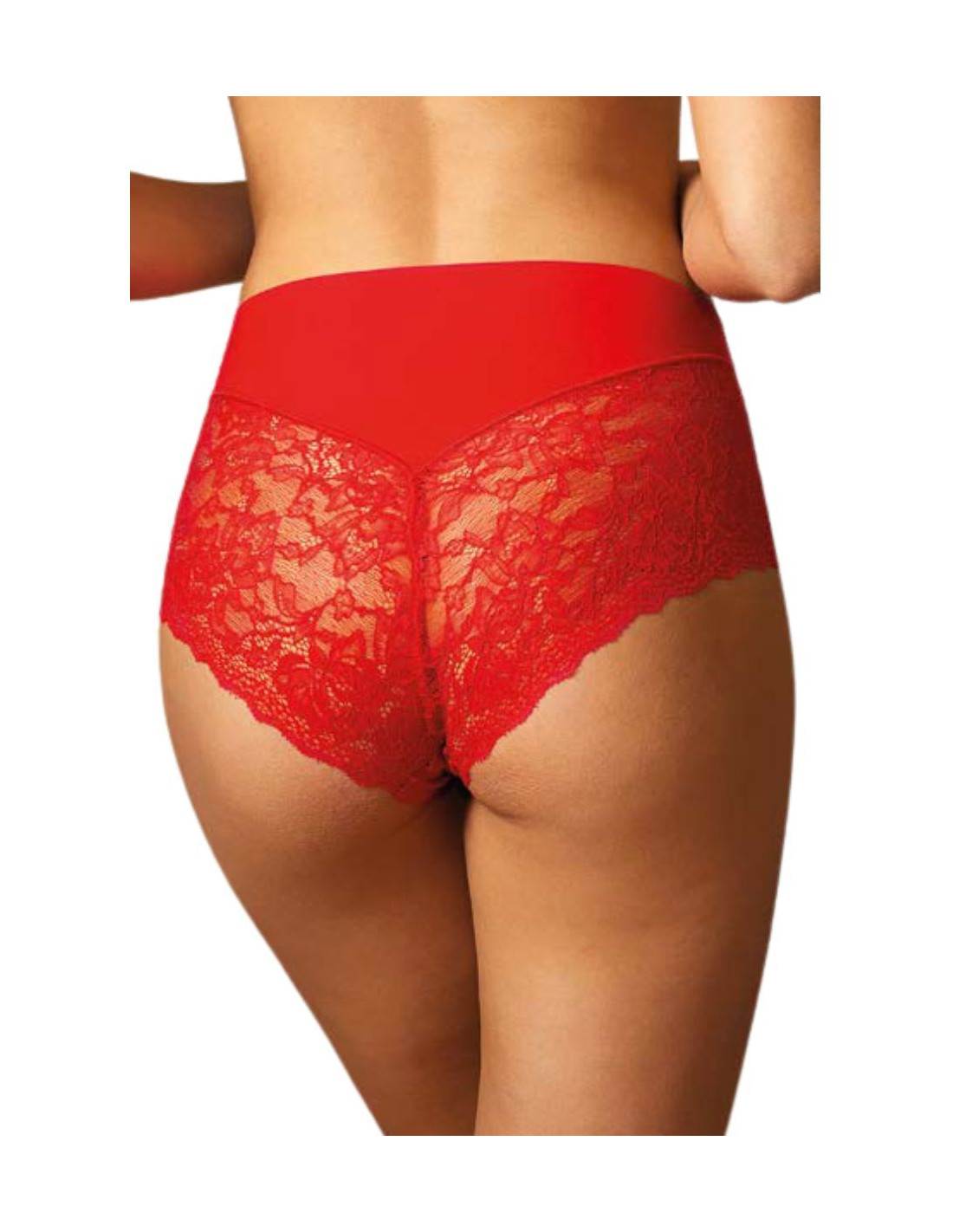Slip midi donna ROSSO PORTAFORTUNA in cotone elasticizzato con bordi e sgambature taglio laser impreziosito da pizzo elasticizzato nella parte posteriore.
