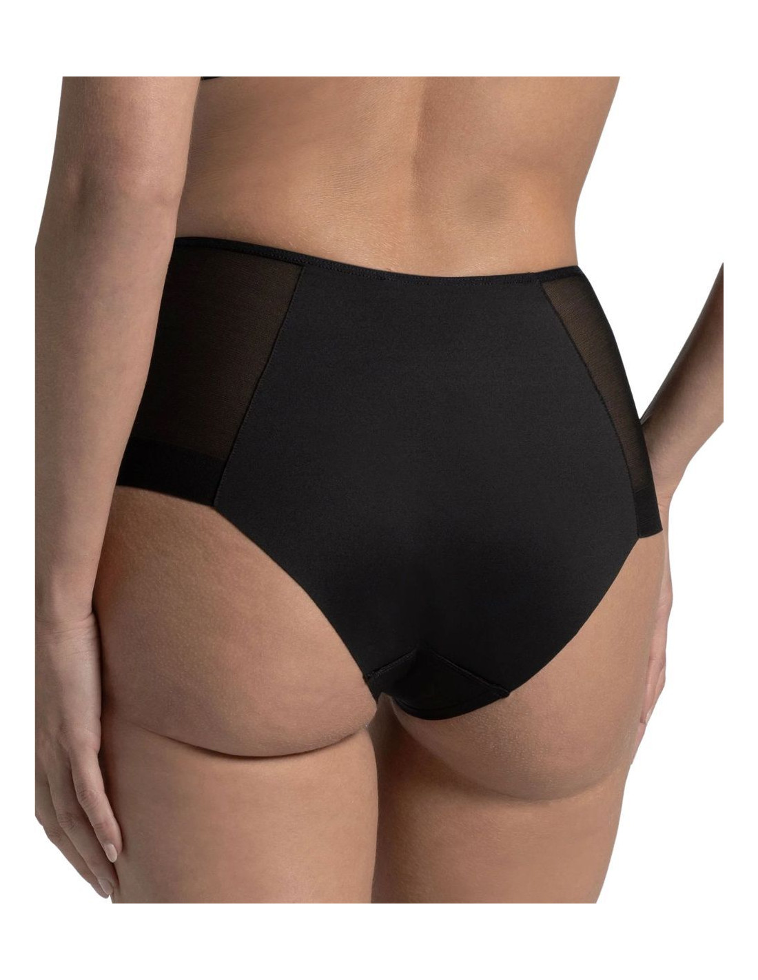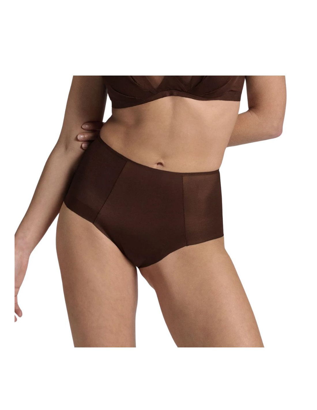 Slip panties vita alta privo di cuciture sui fianchi, permette al capo di abbracciare delicatamente il bacino senza segnare, valorizzando la silhouette con estrema discrezione. Il taglio a vivo in Microspacer, abbinato alla cimosa in Powernet, elimina la necessità di elastici nella sgambatura, disegnata con una linea moderna e avvolgente che accompagna il corpo senza costrizioni.